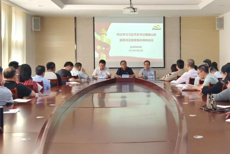 党委书记高尚宇主持并传达学习习近平总书记视察山东重要讲话重要指示精神、习近平总书记在企业和专家座谈会上的重要讲话精神以及省委常委会扩大会议、全省领导干部会议精神。学术副院长王辉传达了罗公利书记在学校领导干部工作会议上的讲话精神。