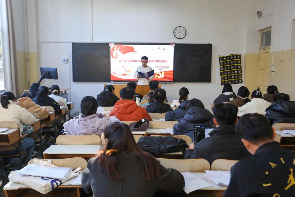 学生党支部在3号楼104组织开展“严守清廉底线,永葆清正本色”的主题党日活动,部分学生党员参加。