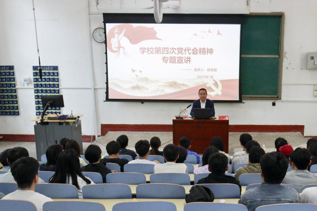 课上,程家国紧扣学校第四次党代会主题,着眼党代会的基本概况,全面、系统地阐释了党代会的重要意义,并对会议主要成果与精神实质进行了细致解读。他指出,学校第四次党代会高瞻远瞩,科学谋划了学校高质量跨越式发展的战略蓝图,所确立的“一三六八十”战略体系为学校高质量发展精准定向。程家国提到青年群体作为学校事业发展的重要力量,应主动将个人理想融入学校“双一流”建设大局,在“特色发展战略”、“人才强校战略”的指引下,明确自身成长定位,实现个人价值与学校发展的有机统一。此次会议使学生、党员进一步增强了责任感使命感,对学校第四次党代会精神有了更清晰、透彻、深刻地认知,引发了热烈反响。同学们纷纷表示,将以此次宣讲会为契机,认真学习贯彻学校第四次党代会精神,积极进取、勇于担当,将个人成长融入学校发展大局,用实际行动为学校高质量发展贡献力量。(文:郝敬如 图:祝健宁)