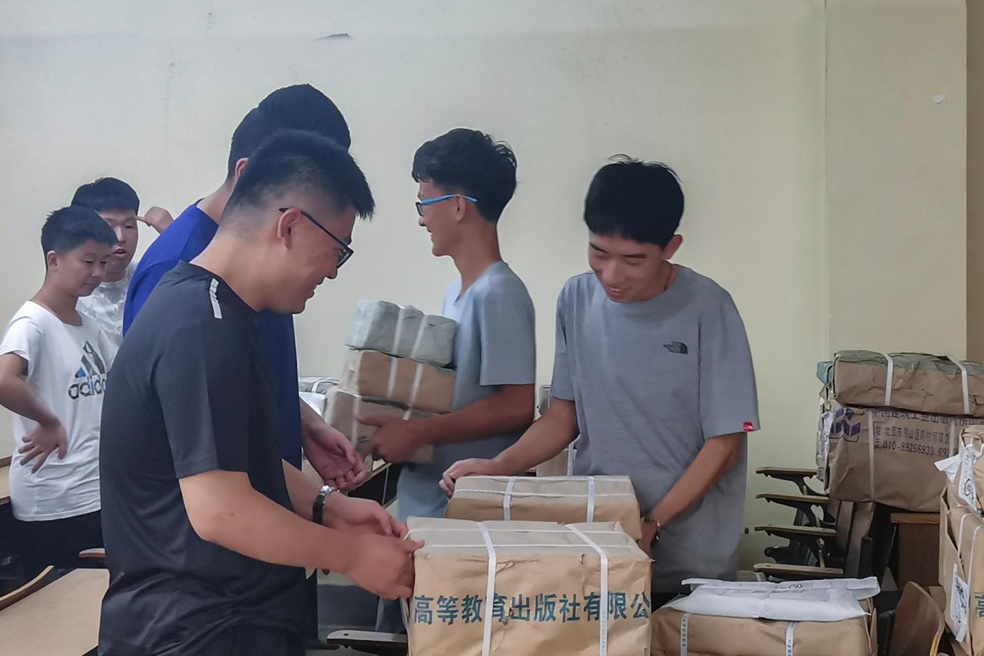 8月28日,球探网足球 教材发放工作在5#103、104有序进行。