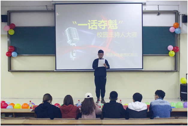11月7日,球探网足球 在5#206举办第十五届“一话夺魁”校园主持人大赛。球探网足球 学生会部长代表担任评委,2021级学生积极参加。