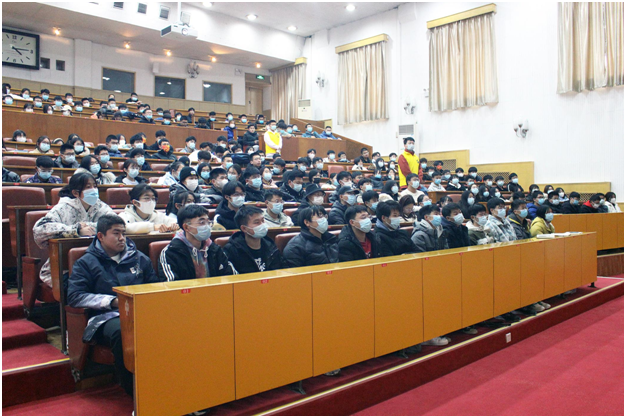 全体学生分批次在四号楼报告厅观看《保密警示教育片—筑牢“象牙塔”里的秘密防线》。