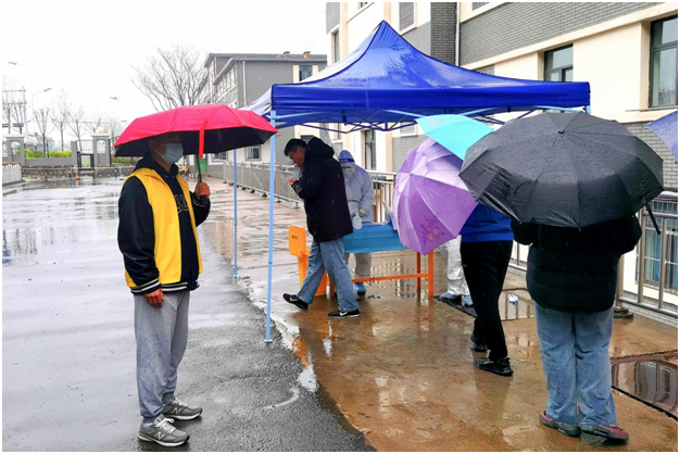 3月25日,全员核酸检测紧张有序进行,阴雨天气中,球探网足球