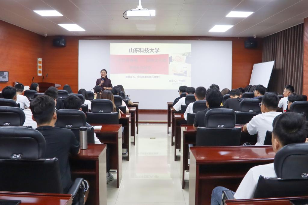 邀请泰安知行礼仪文化研究院院长齐向娟为2023级全体研究生作“尽显青春美,绽放文化魂”职场礼仪报告。
