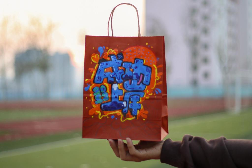 面向低年级学生开展福袋彩绘征集活动,学弟学妹们认真勾勒、绘画、点缀,可爱的卡通人物、富有美感的艺术字、一句句手写的真挚祝福绘在一个个福袋上,饱含了对考研学子的深深祝福。苹果象征着“苹”安上岸,香橙代表着心想事“橙”,文具套装助力学业有成,暖宝宝为夜读学子提供温暖,糖果的酸甜映照考研路上的艰辛与收获……一件件寓意丰富、心意满满的物品连同暖心祝愿被塞进了小小的福袋。