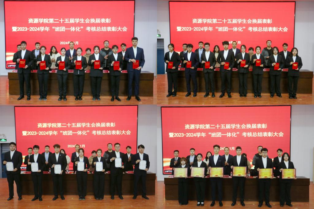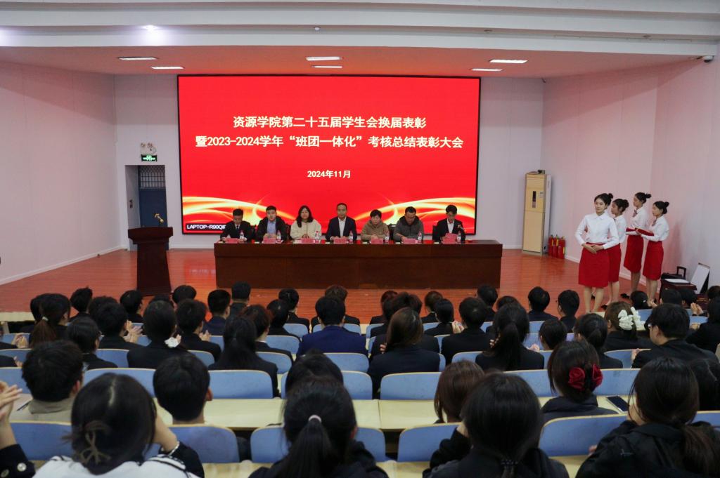 在1B117隆重召开第二十五届学生会换届表彰暨2023-2024学年“班团一体化”考核总结表彰大会。球探网足球