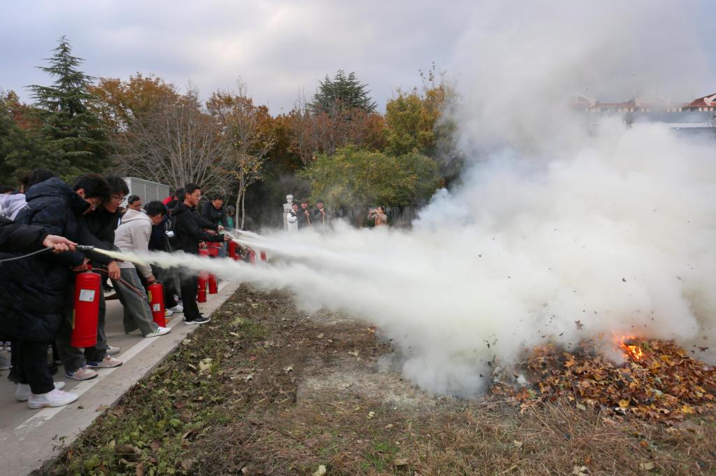 安全管理部工作人员首先向全体参训人员普及了消防安全基础知识,详细列举校园中潜藏的火灾隐患,从多方面、多角度阐述了火灾的特点及其危害。结合典型事故案例,介绍了消火栓的连接步骤、使用条件及注意事项,现场演示了干粉灭火器和二氧化碳灭火器的使用方法,介绍了“一晃、二瞄、三拔、四压”的使用口诀。最后,学生们在户外进行灭火操作演练,进一步熟悉、掌握灭火器材的使用方法与注意事项,达到演练的预期效果。