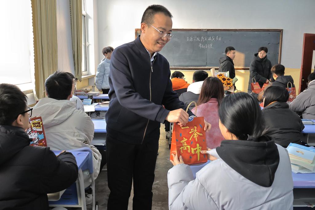 福袋内,寓意平安上岸的苹果散发着诱人的果香,实用的文具套装是搭建知识堡垒的得力武器,温暖的暖宝宝在寒夜中传递着贴心的关怀,甜蜜的糖果蕴含着满满的幸福滋味,一张张写满励志话语的小卡片……鼓舞考研学子勇往直前。
