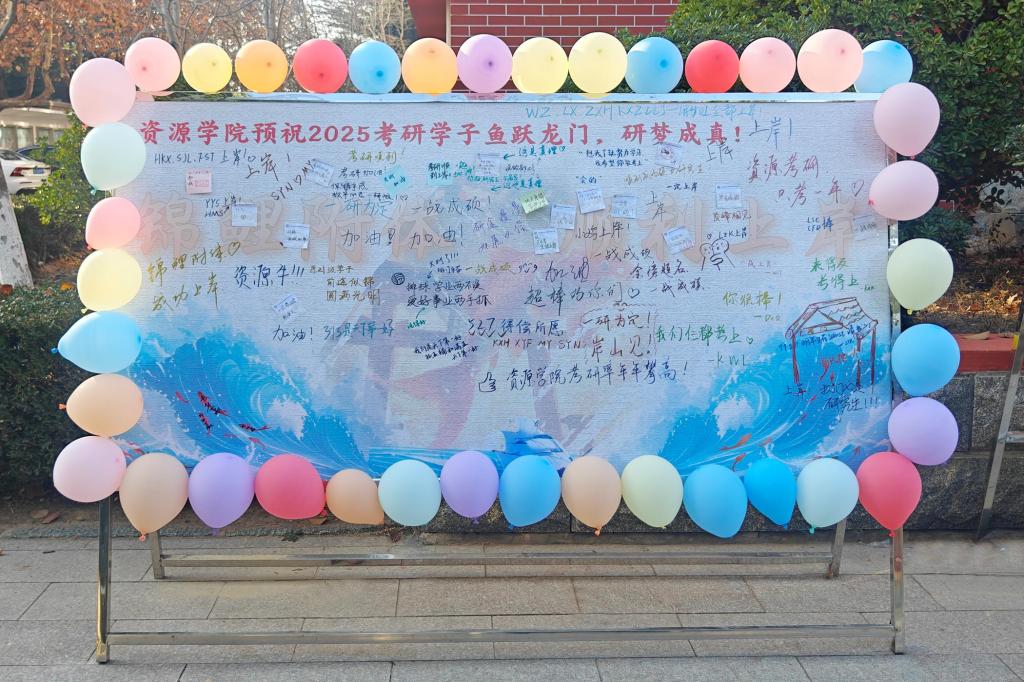 领导、老师、同学们在展板上写下对考研学子的美好祝愿。