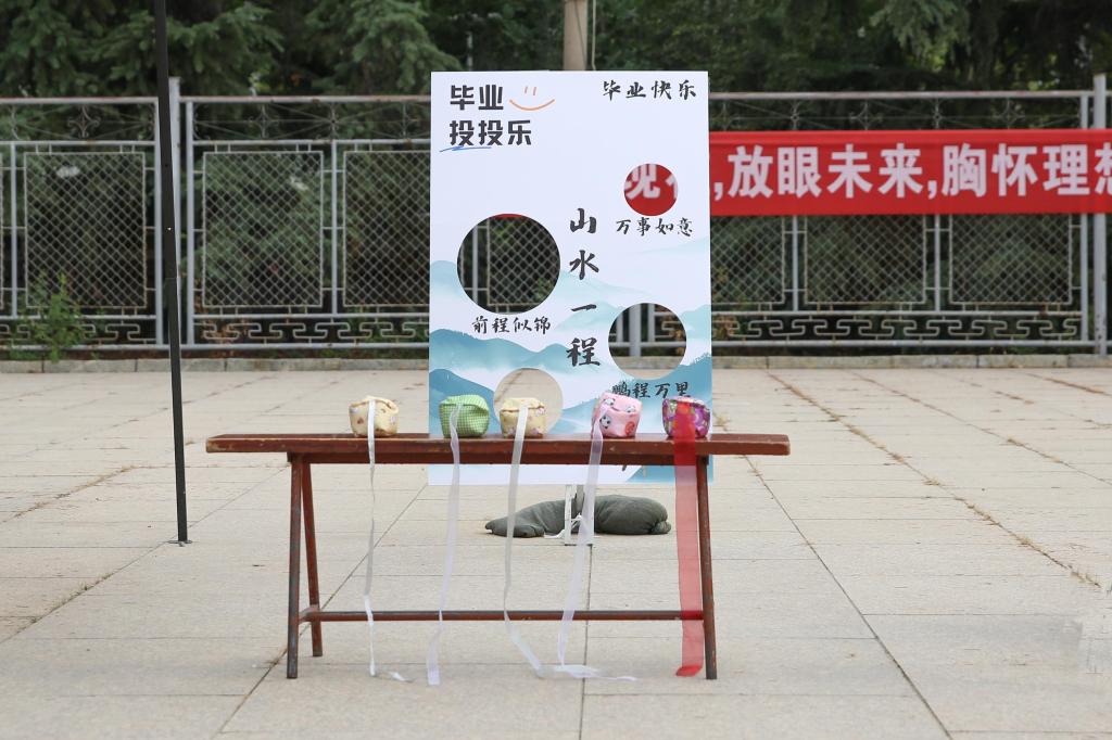 在礼堂前举办“精准投掷,赢得未来”毕业季系列活动。