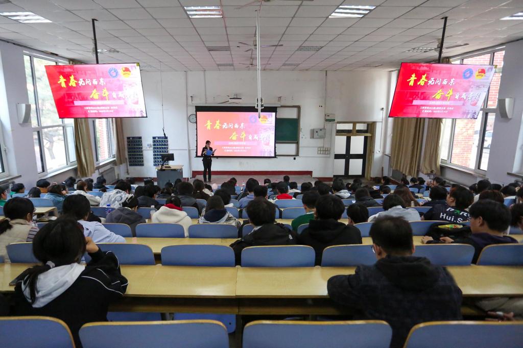 3月19日,球探网足球 在1A107举办“五四红旗”团支部答辩会。球探网足球 辅导员担任评委,全院8个候选团支部参加答辩。