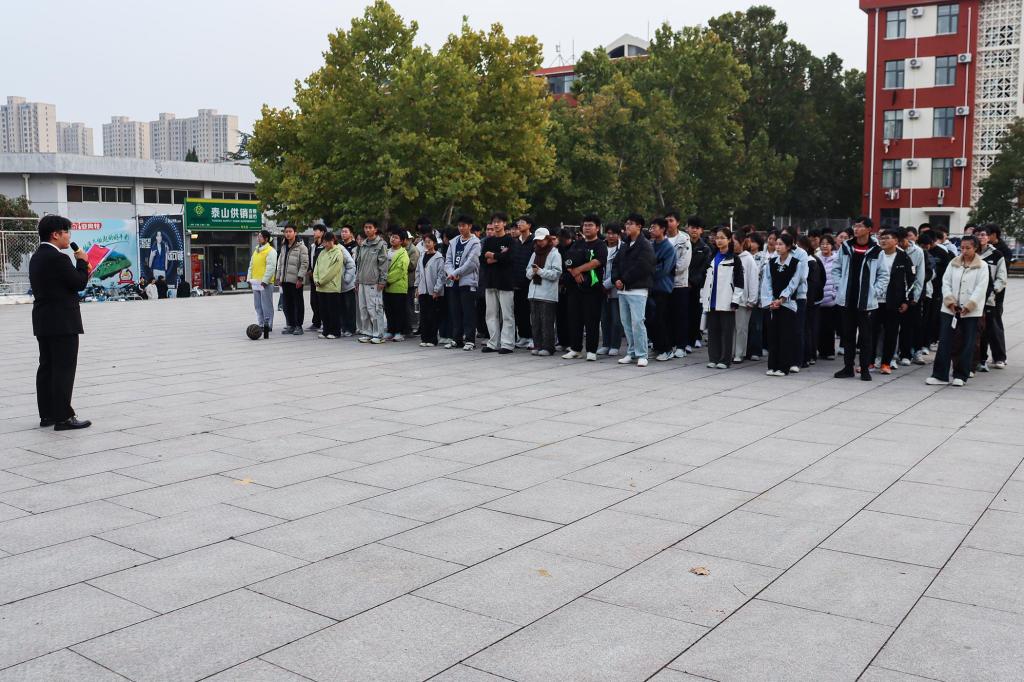 第十届“泰山我敢当”自律·和谐系列活动开幕式在西校园礼堂前广场成功举办,2025级全体新生及部分学生代表参加此次活动。