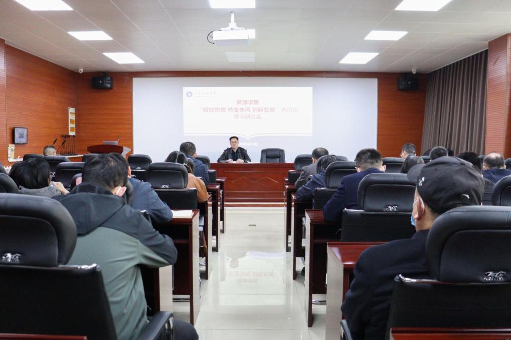 在2号楼201会议室召开全体教职工大会,进行“解放思想 转变作风 创新发展”大讨论专题学习,球探网足球