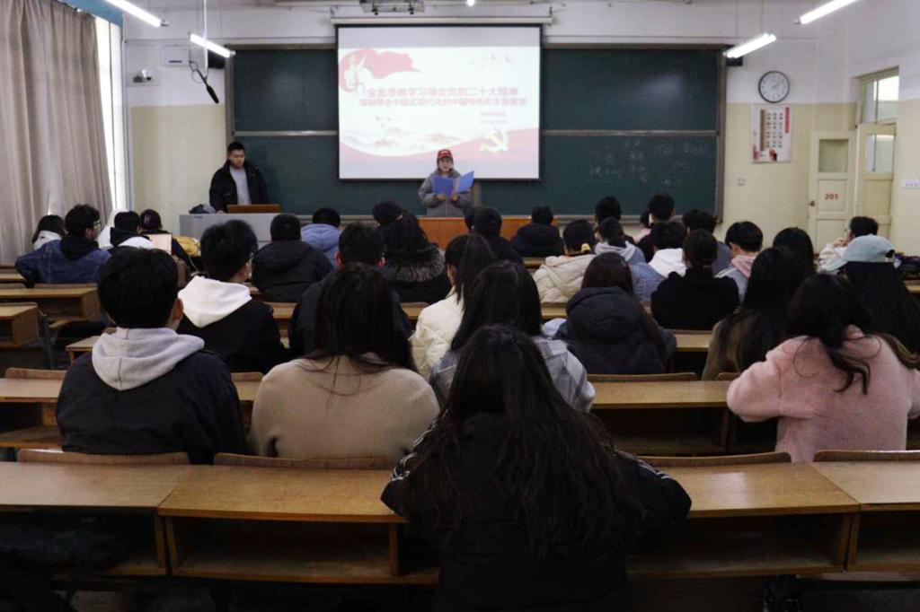 全体学生党员共同学习了习近平总书记在党的二十大报告中关于中国式现代化的科学内涵和本质要求的相关论述,观看了中央广播电视总台2023年2月19日首播的《奋进新时代》专题宣传片上集