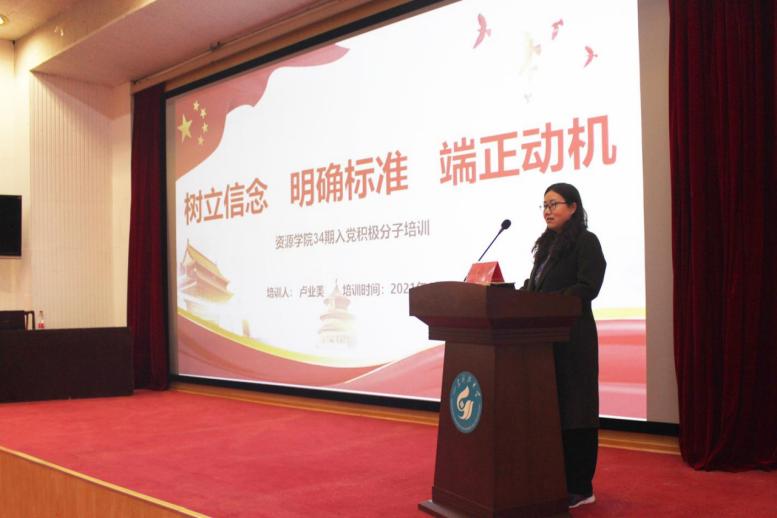 4月22日,球探网足球 学生第一党支部书记卢业美在四号楼报告厅为球探网足球 34期积极分子讲授“树立信念、明确目标、端正动机”专题党课。