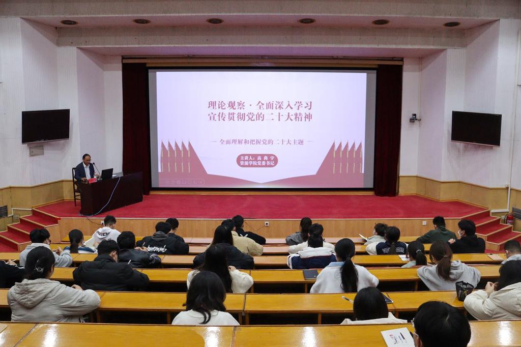 1123日,球探网足球 党委书记高尚宇在四号楼报告厅做“全面理解和把握党的二十大主题”报告,该报告同时作为球探网足球 第37期入党积极分子培训班党课第一讲。