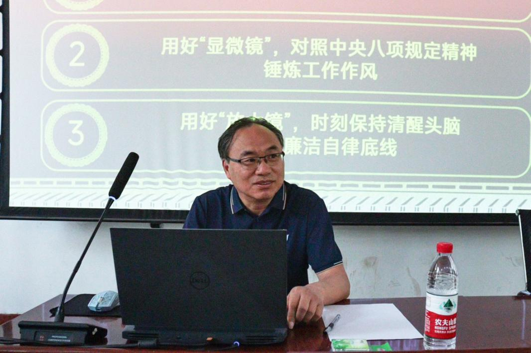 全体教工党员大会上,以“以镜为鉴,锤炼过硬作风”为题,讲授了作风建设专题党课。