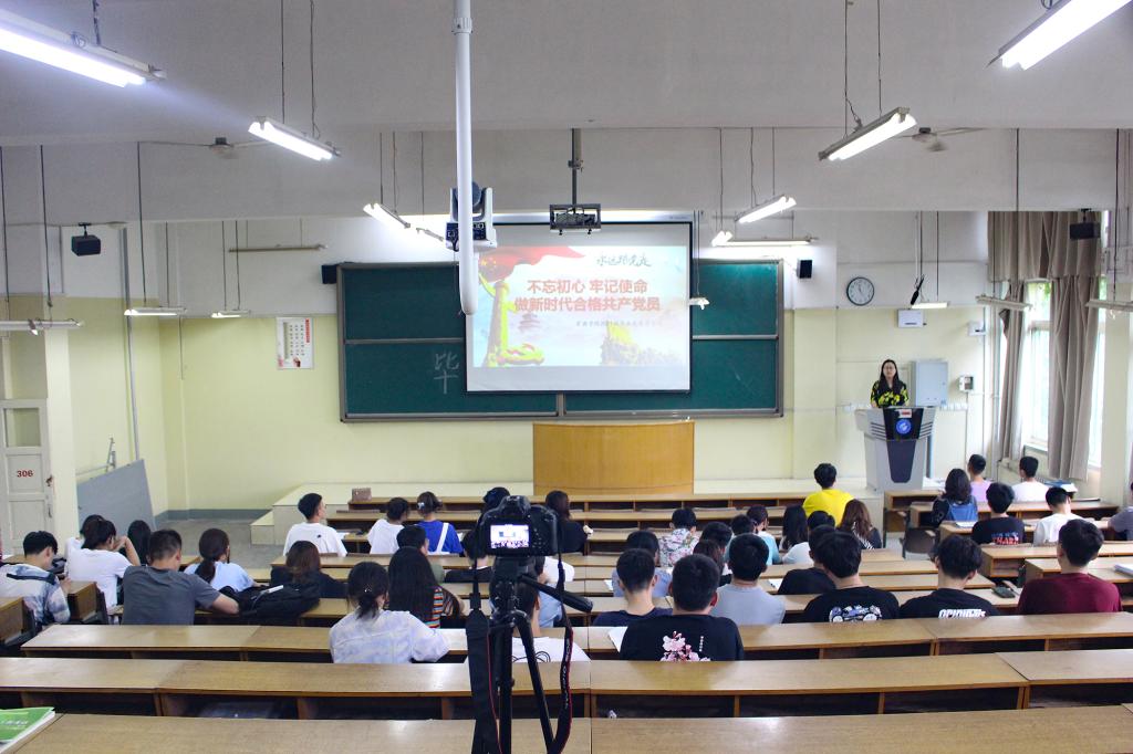 6月21日,球探网足球 学生第一党支部书记卢业美在5#206为球探网足球 全体毕业生党员讲授“不忘初心、牢记使命,做新时代合格共产党人”专题党课。
