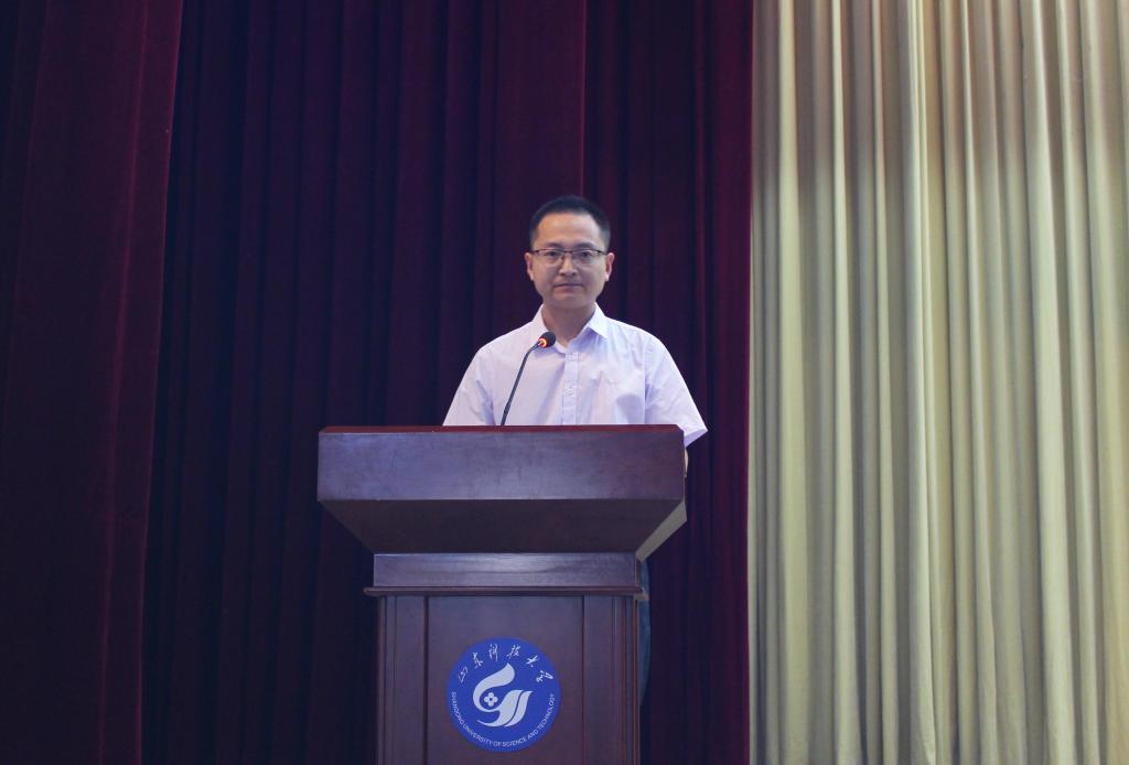 会上,院长王清标代表球探网足球 向2021级新生表示诚挚的祝贺和热烈的欢迎。从时代发展与变革的宏观角度向初入校园的同学们传递殷殷寄语。他指出,同学们要将科大“惟真求新”的校训作为自身成长道路上的精神坐标,立志为学,夯实专业基础,培养高尚品格,积淀丰厚学养,开拓新境界。针对即将开始的大学生活,王清标对新生提出几点要求:一是努力学习,拓展知识的广度;二是注重科技创新,增加知识的深度;三是与人为善,增强情感的温度;四是养成习惯,锤炼意志的强度;五是海纳百川,增大胸怀的大度;六是培养科学思维,增强辩证的角度;七是全球观念,提高视野的高度。最后,王清标表示,希望同学们身在泰山脚下学习深造,思想在泰山之巅锤炼,有总揽全局、高瞻远瞩的魄力与担当,求真学问、练真本领,发扬“山海泉”精神,做勇担时代使命的新青年。