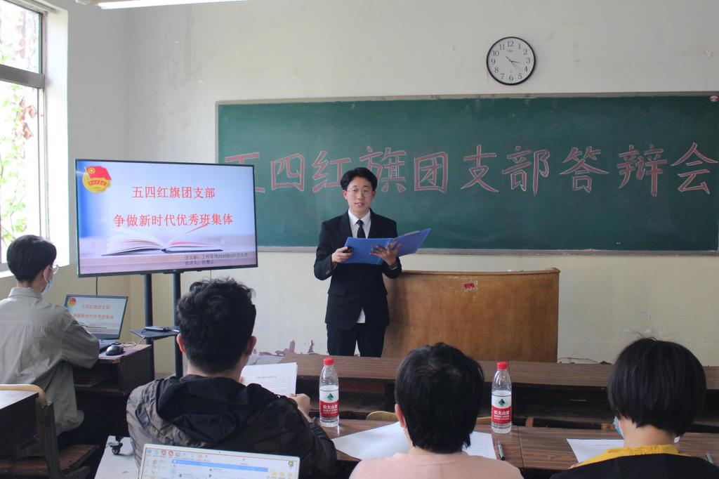 团委书记洒艳,辅导员张裴、卢业美、牛会功、张瑞清担任评委,安全工程2019级1班、安全工程2019级2班、测绘工程2019级2班、工程造价2019级2班、工程管理2020级1班团支部参加本次答辩。