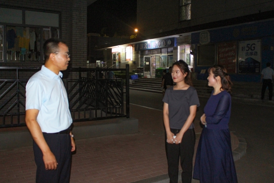 领导老师不辞辛劳,在校园内巡查值班,将关怀送到学生心坎。