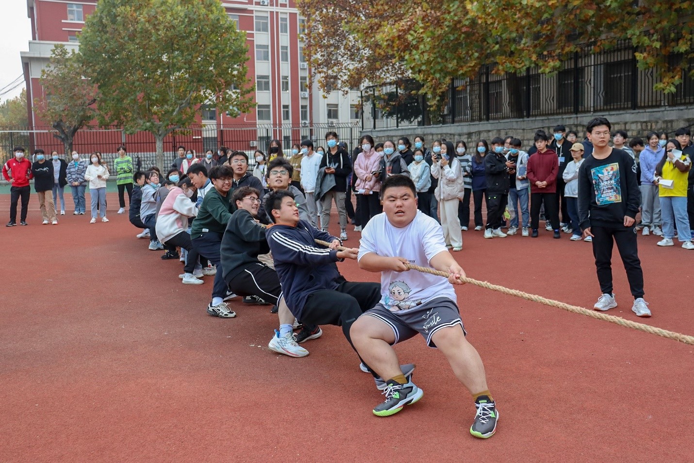 举办的“青春竞技场”大学生文体素质引导系列活动——第六届班级拔河比赛在东校园田径场火热进行中。球探网足球