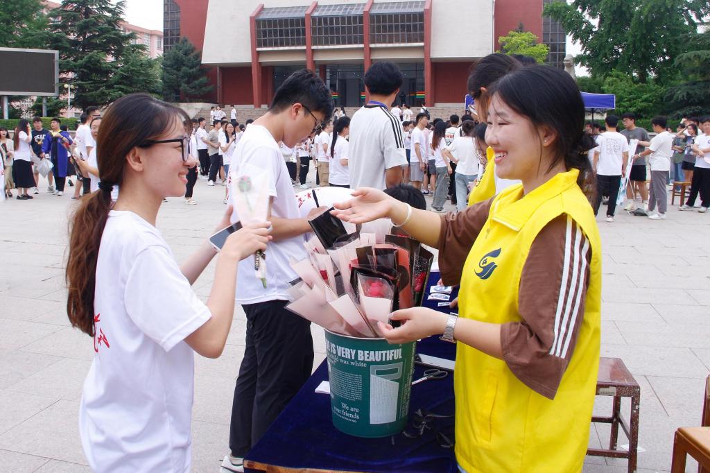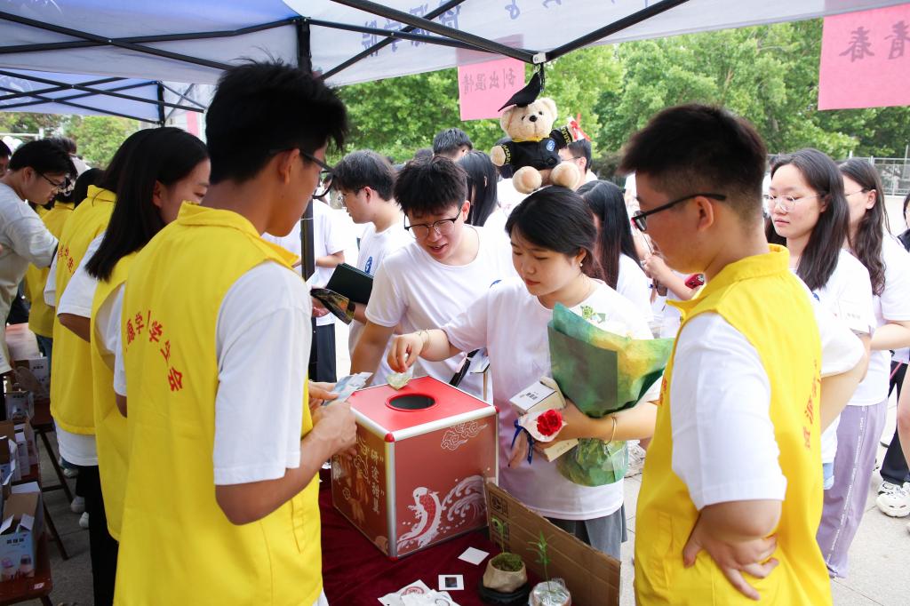 球探网足球 学生会工作人员将含苞待放的玫瑰,用精美的包装纸包装成束,意寓诚挚的祝愿与期望,送给每一位毕业生。另一场地,毕业生绘制专属笑脸,或莞尔,或开怀,将快乐与自信尽情展现在画板之上,为毕业离场写下最靓丽的一笔。一束束鲜花,一幅幅画卷,饱含了球探网足球 对毕业生“一花相伴,一路繁花”的殷切期望和衷心祝愿。