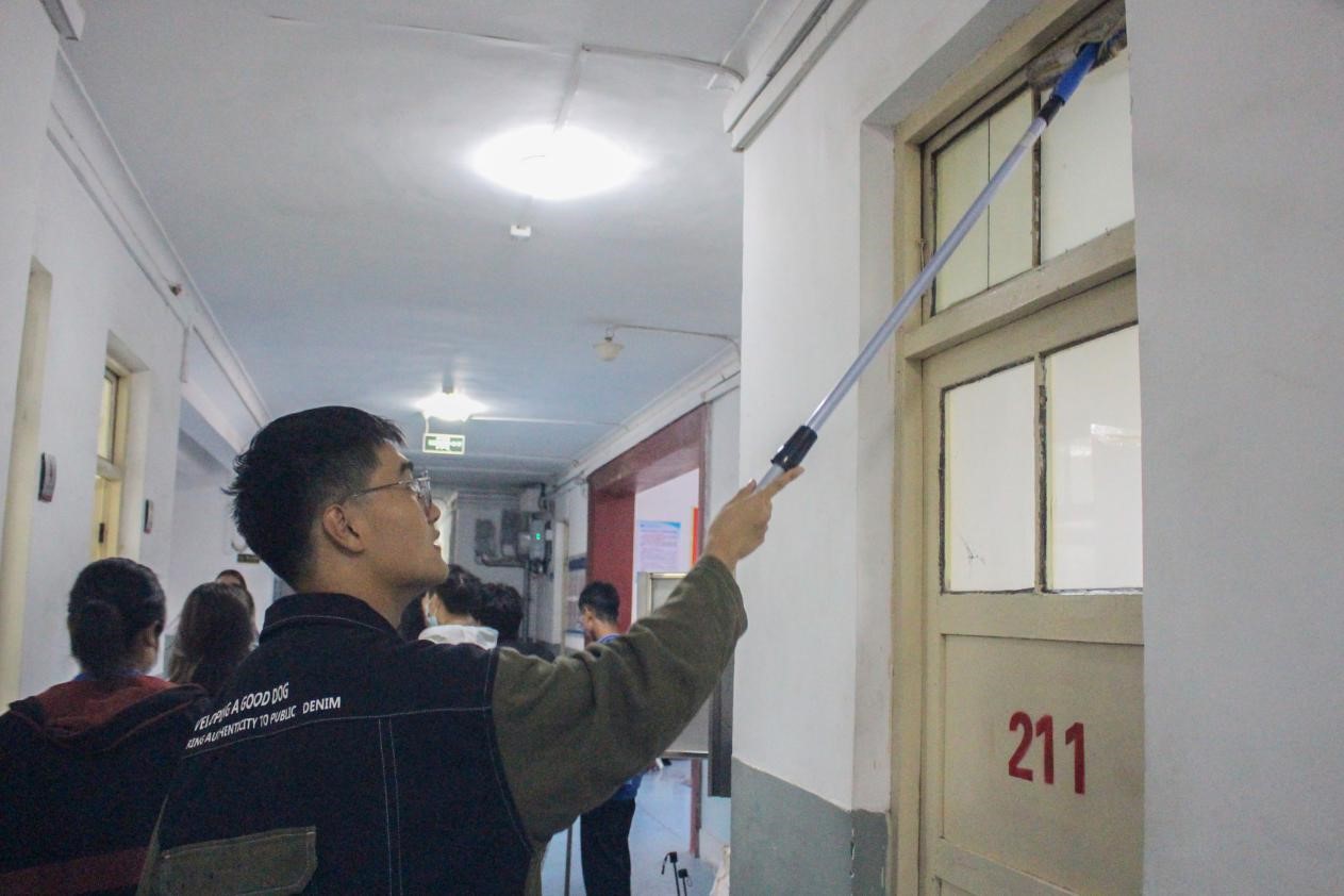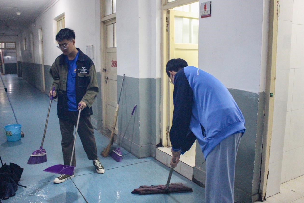 从打扫走廊、清理门窗,到擦拭桌椅、整理桌面……活动过程中,志愿者们热情高涨、分工明确、相互协作,不放过任何一处卫生死角,充分发扬了不怕累、不怕脏的奉献精神,出色的打扫成果受到了楼内师生的一致好评。