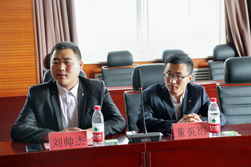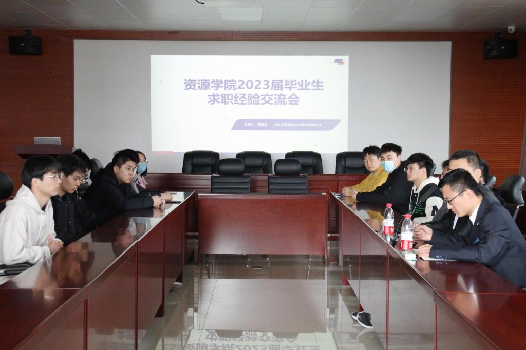 在2号楼201会议室举办2023届毕业生求职经验交流会,2022届山东省优秀毕业生董英浩受邀担任主讲,会议由辅导员刘帅杰主持,球探网足球