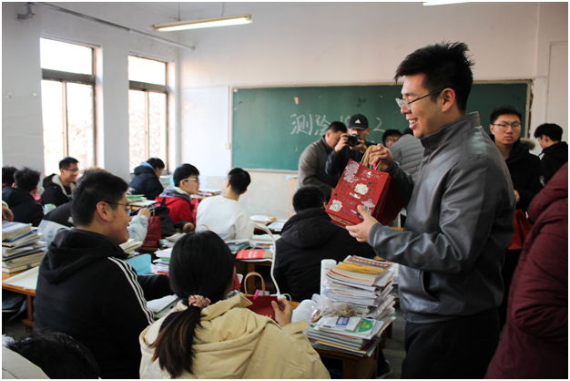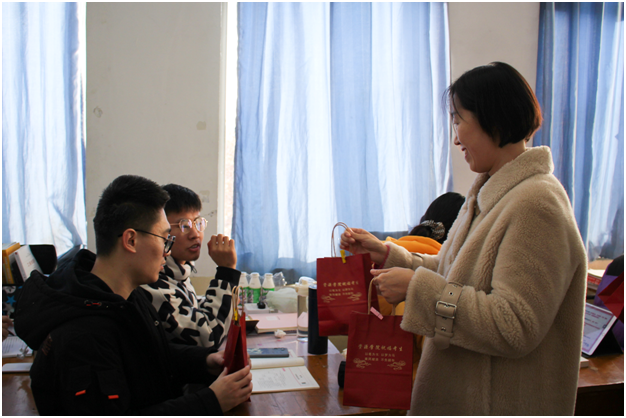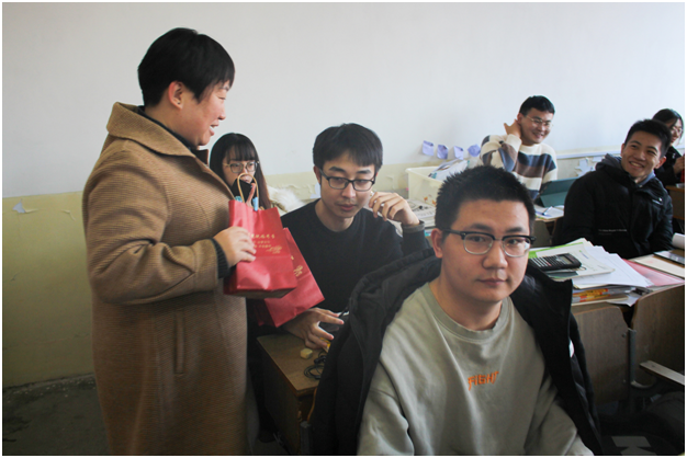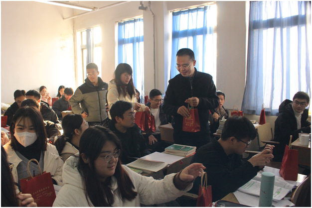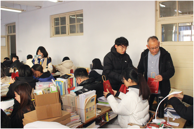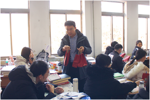 党委副书记程家国亲手将一个个福袋递到考研学子手中,向考研学子表示慰问、鼓励和期望。