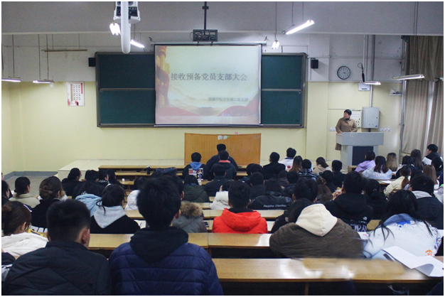 学生党支部书记洒艳、卢业美主持,全体正式党员和预备党员参会。