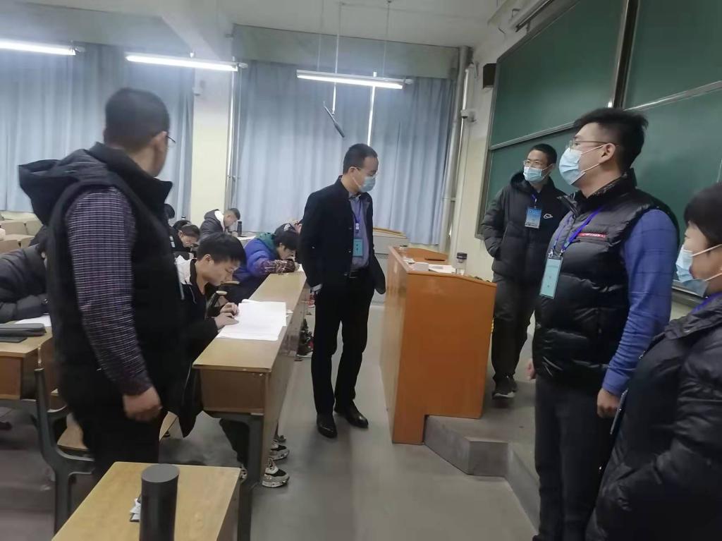 1月4日,球探网足球 党委副书记、副院长程家国,球探网足球 副院长秦广鹏带领辅导员、教科办工作人员一行深入球探网足球 期末考试考场进行巡考。