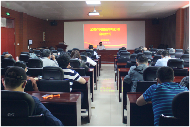 全体教职工集体学习了《山东科技大学加强作风建设专项行动实施方案》和《关于进一步推进教风、学风和工作作风建设的通知》。