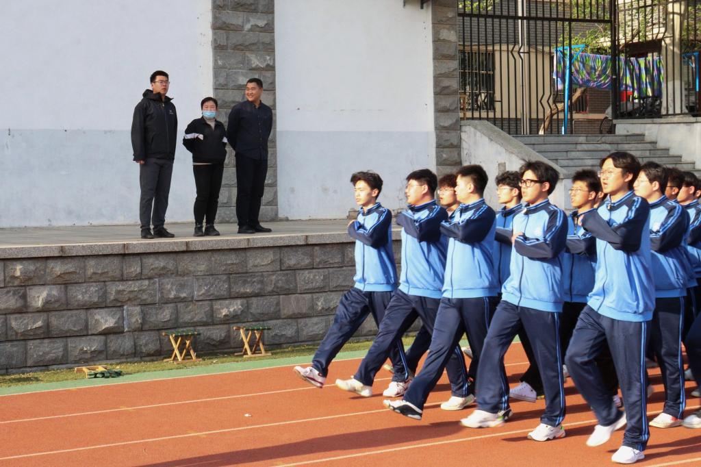 学工办主任、团委书记洒艳、辅导员王淦、刘帅杰到操场指导运动会开幕式方队训练。
