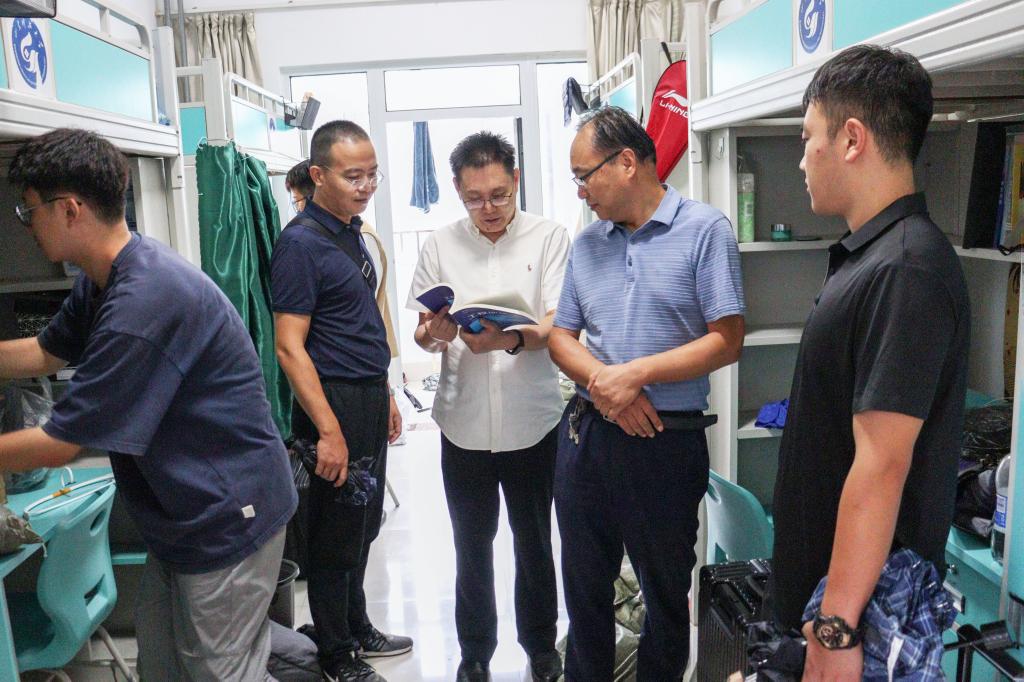 领导和老师们仔细查看了宿舍的各项硬件设施使用情况,排查安全隐患,并与同学们亲切交流。王清标详细询问同学们的假期生活、校园搬迁后的适应感受及新学期课程学习安排情况,提醒同学们要加强宿舍文明卫生建设,养成良好生活习惯,以最佳的精神面貌投入新学期的学习生活中。高尚宇表示,新学期,新展望,希望同学们树立正确学习目标,走下网络、走出宿舍、走向图书馆、走向操场、走向实验室,努力提高自身综合素养,争做有理想有本领有担当的新时代青年。