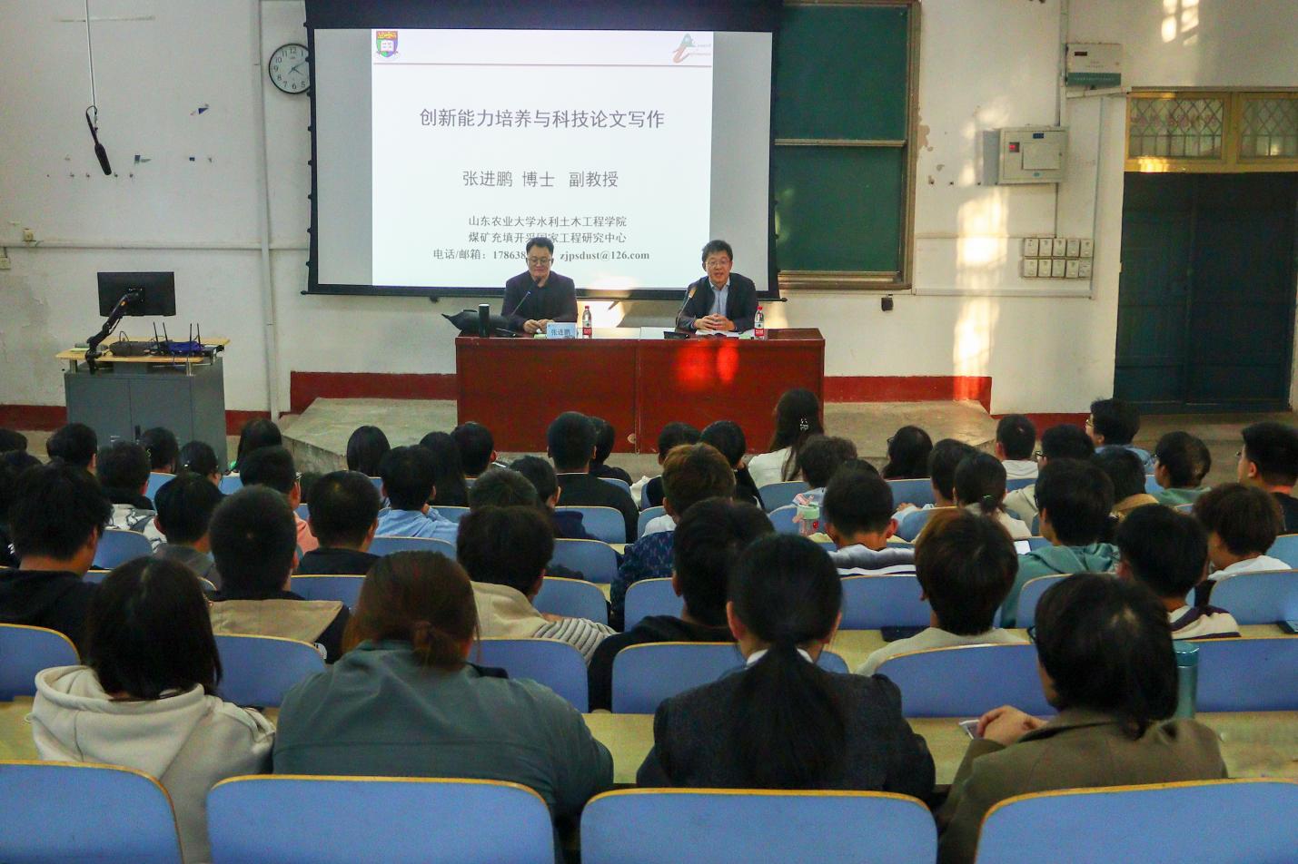 煤矿填充开采国家工程研究中心副教授张进鹏在西校园1A107作“创新能力培养与科技论文写作”专题报告。球探网足球