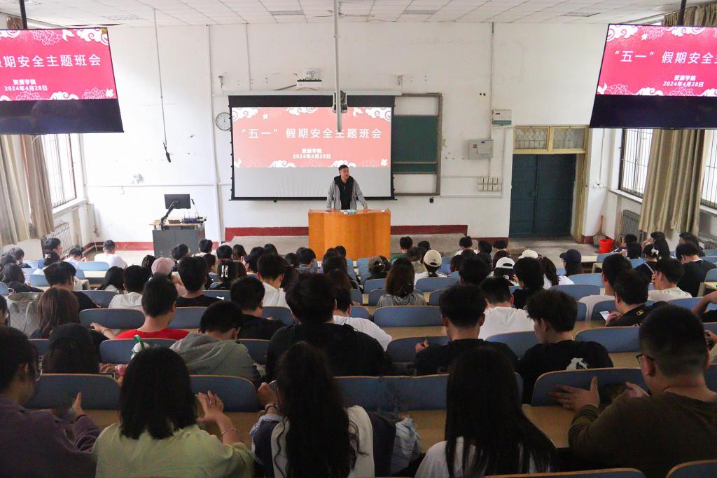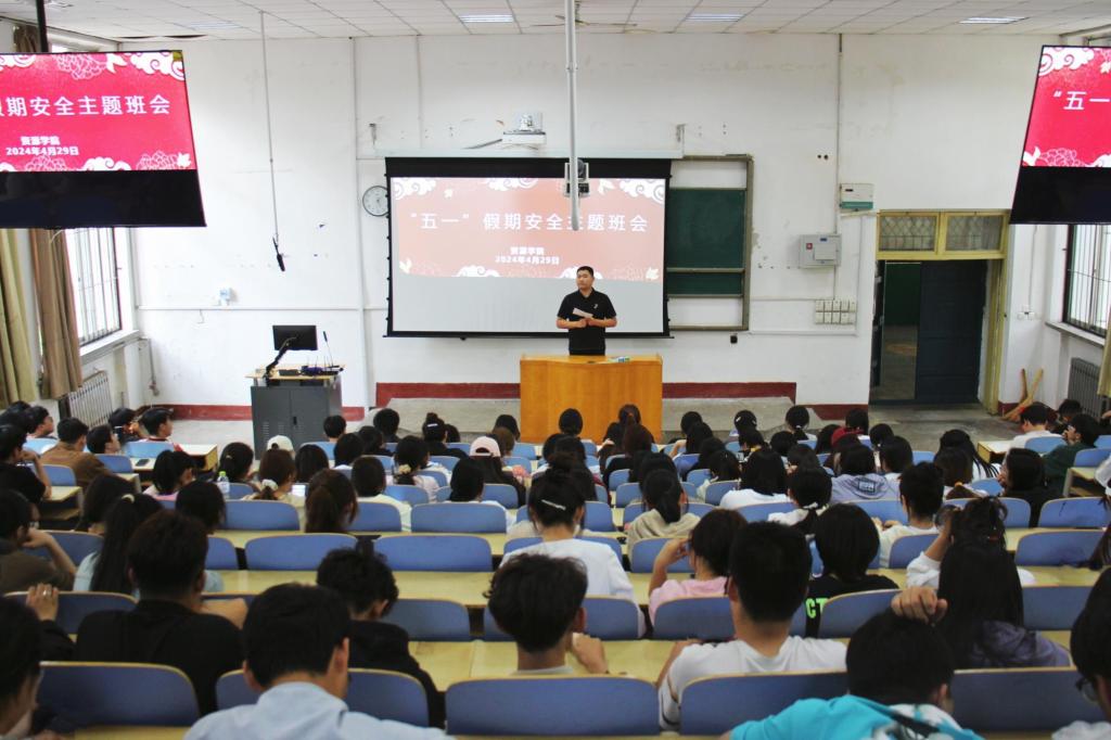 各年级陆续召开“五一”假期安全教育主题班会。辅导员主持会议,全体学生参加。