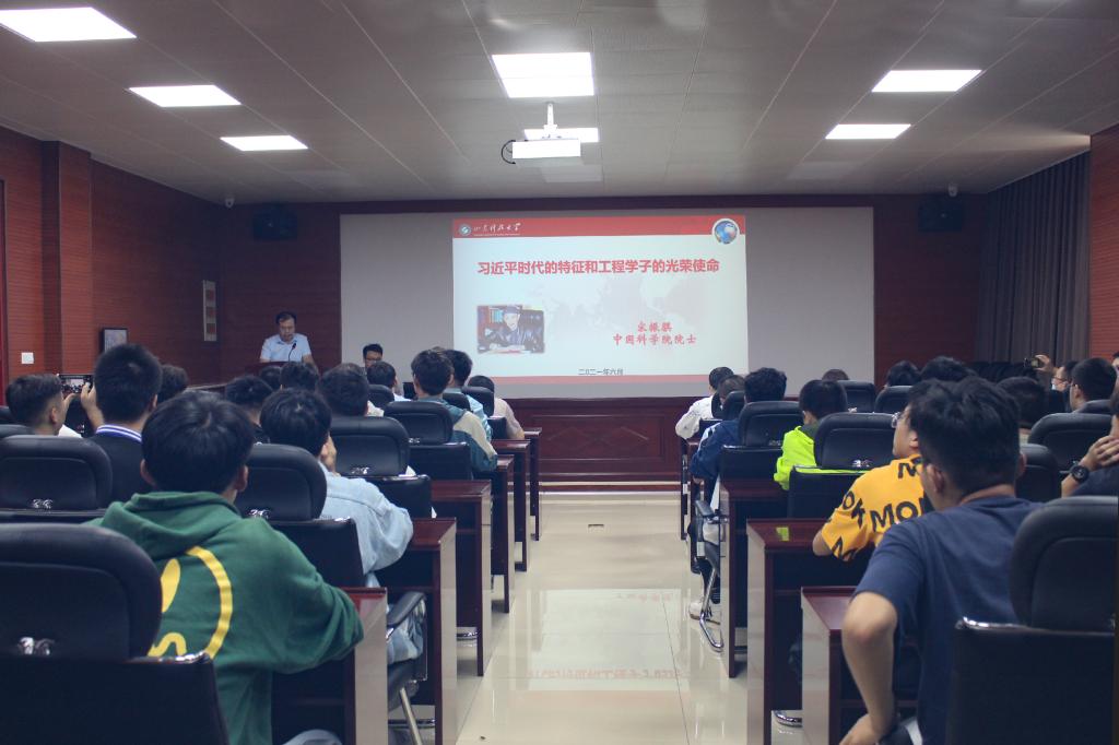 宋振骐院士结合习近平总书记“七一”重要讲话精神,紧扣“目标”“使命”两大关键词,向同学们详细阐述了中国共产党领导的中国革命和建设发展的历程。随后,宋振骐院士结合实例,具体介绍了最新科技政策、科研成果和前沿科技热点。他表示,科技作为我国引领发展的第一动力,正在从量地积累迈向质的飞跃,从点的突破迈向系统能力的提升。他强调,未来属于青年、希望寄予青年,同学们要积极参与推进我国科学技术创新发展改革的伟大事业中,把实现我国科学技术、文化以及管理体制和运行机制的创新作为终生奋斗的目标。