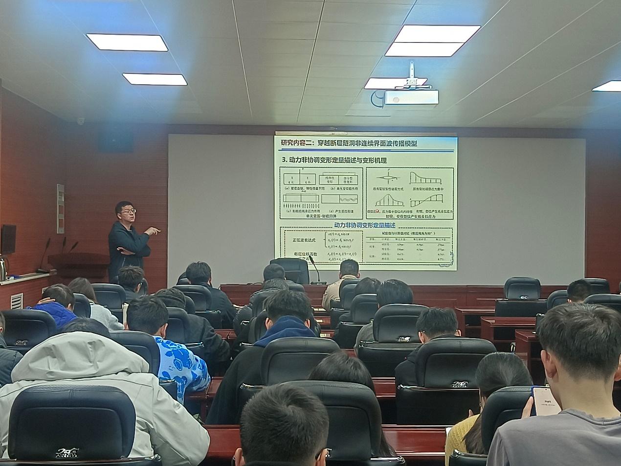 12月7日,河海大学张聪博士在2号楼201为球探网足球 研究生作“强震区穿越断层隧道非连续界面应力波传播模型与抗震材料特性研究”学术报告,球探网足球 相关专业研究生参加。